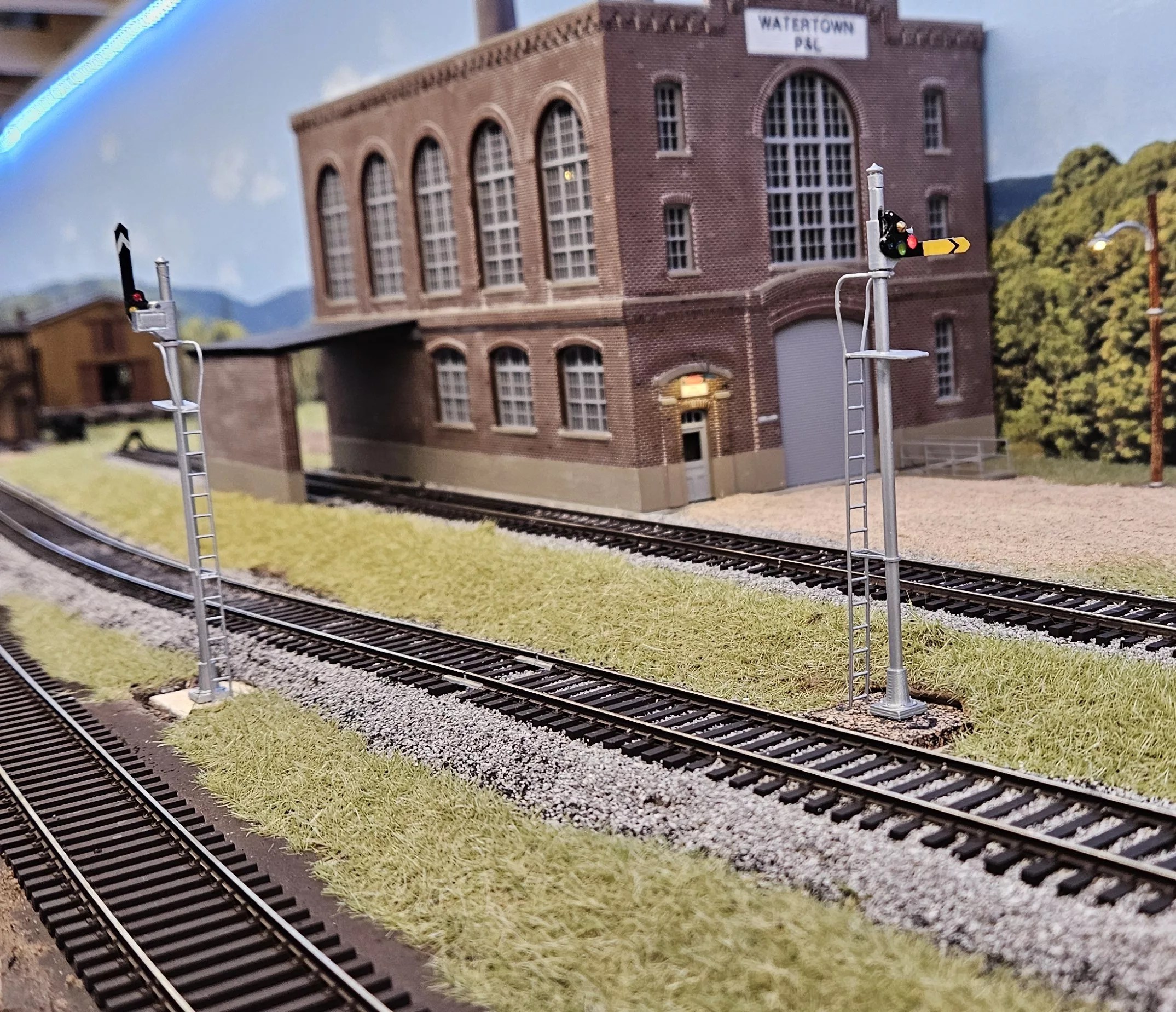 I just built two new single head semaphore signals for the North end of Watertown yard. I have built several double head semaphores, but these were my first singles. The mast is made from 3/32" brass tubing with everything else being 3d printed, including the ladder, which I had previously…